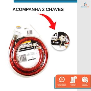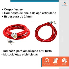 Cadeado para moto Articulado Chave Tetra 1,2m X 24mm Starfer- Cadeado para motocicletas com 120 cm de perímetro, corpo flexível composto de anéis de aço articulados com espessura 24mm.- Revestimento emborrachado e fechadura em metal zincado.- Indicado para amarração anti furto de motocicletas.- Acompanha 2 chaves Tetra.Ref.: 03030962Marca: Starfer