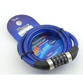 Tamanho aproximado do cadeado: 1m Tamanho aproximado da embalagem: a:16xl:10cm Peso aproximado: 130g Tipo de produto: cadeado trava de bicicleta moto com segredo Cor: Azul Composição: abs, pvc e aço carbono