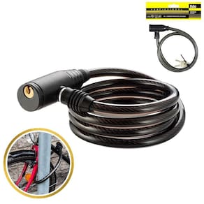 Cadeado Trava Bicicleta Cabo Aço Plastificado 80Cm Eda Informacoes do Produto Cadeado para bicicleta com cabo de aco 80cm 9YJ - Cadeado para Bicicleta 80cm - Fabricado em Ferro, plastico PVC, HDPE. - Acompanha 2 Chaves
