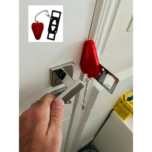Use em qualquer porta que tenha dobradiças e abra para dentro. Ótimo para estudantes fora da faculdade e para essas mesmas faculdades e escolas usarem como uma opção acessível para seus bloqueios de segurança. Acessório perfeito para ter durante uma viagem ou estada em um airbnb ou hotel. Este produto oferece segurança e privacidade. Tamanho portátil, não ocupando muito espaço na sua mala, caso pretenda levá-la durante as viagens.