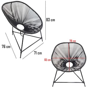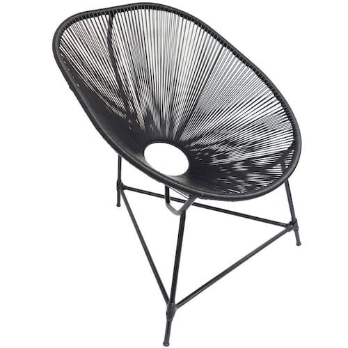 Cadeira Acapulco Poltrona Aço Fibra Sintética Junco Casa Varanda Jardim Preta Agp Ilumini - Preto