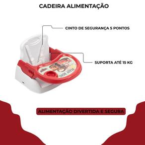 Cadeira de alimentação portátil bandeja ajustável booster até 15 kg disney carros A cadeira para alimentação tipo booster é versátil e pode ser em cima de uma cadeira regular. Leve e facilmente desmontável, pode ser transportada para qualquer sem dificuldades. Muito segura, está equipada com cinto de segurança de 5 pontos. Idade recomendada: 6 meses + Peso suportado: até 15 kg Cinto de segurança de 5 pontos Bandeja removível e ajustável em 3 posições Adaptável a cadeiras Desmontável, fácil de transportar Material: plástico e aço Registro inmetro: 001 486/2022 de 3 meses direto com o fabricante Marca: Não Informado