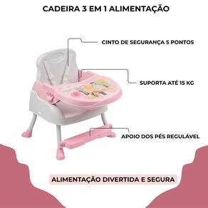 Cadeira de alimentação infantil portátil princesas 3 em 1 até 15 kg styll baby Cadeira para alimentação 3 em 1 é versátil, transformando-se em cadeira alta, cadeira baixa e assento tipo booster para ser em cima de uma cadeira regular. Leve e facilmente desmontável, pode ser transportada para qualquer lugar sem dificuldades. Muito segura, está equipada com cinto de segurança de 5 pontos. Registro inmetro: 013509/2024 Características: Idade recomendada: 6 meses + Suporta até: 15 kg Bandeja removível e ajustável em até 3 posições Apoio dos pés regulável Cinto de segurança de 5 pontos Suporte para copos Assento pode ser fixado com segurança em uma cadeira regular Material: plástico e aço de 3 meses direto com o fabricante Marca: Não Informado