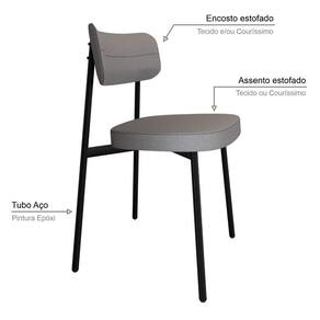 Material Principal Composição: Aço/Madeira Multilaminada/MDP/Espuma/TecidoMaterial da Estrutura Pés: AçoAcabamento Estrutura: Epóxi-PóTipo de Encosto: Fixo AnatômicoMaterial Estrutura do Encosto: Madeira MultilaminadaEnchimento Encosto: Espuma D-22Revestimento do Encosto: TecidoTipo do Assento: FixoMaterial Estrutura do Assento: MDPEnchimento Assento: Espuma D-28Revestimento do Assento: TecidoPossui Braços: NãoTipo: CadeiraModelo: FixoEmpilhável: NãoDobrável: NãoAmbiente Principal: Sala de Estar JantarEstilo: ContemporâneoSuporta Até (kg): 120 kgRecomendações de Uso, Manutenção e Limpeza: Para a limpeza, utilize flanela seca ou pano macio levemente umedecido em água. Utilize um pano seco em seguida. Evite contato com produtos químicos (solventes, thinner, acetona, etc) e não utilize nenhum tipo de esponja de aço.Necessita de Montagem: Sim Acompanha Manual de MontagemComplexidade da Montagem: Média: pode ser montado por mais de uma pessoa e/ou necessite de maior conhecimento para montagem.