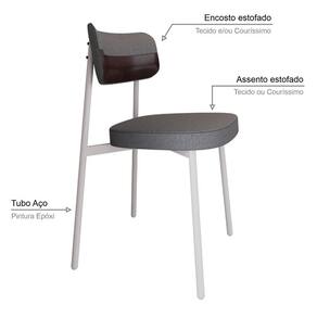Material Principal Composição: Aço/Madeira Multilaminada/MDP/Espuma/TecidoMaterial da Estrutura Pés: AçoAcabamento Estrutura: Epóxi-PóTipo de Encosto: Fixo AnatômicoMaterial Estrutura do Encosto: Madeira MultilaminadaEnchimento Encosto: Espuma D-22Revestimento do Encosto: TecidoTipo do Assento: FixoMaterial Estrutura do Assento: MDPEnchimento Assento: Espuma D-28Revestimento do Assento: TecidoPossui Braços: NãoTipo: CadeiraModelo: FixoEmpilhável: NãoDobrável: NãoAmbiente Principal: Sala de Estar JantarEstilo: ContemporâneoSuporta Até (kg): 120kgRecomendações de Uso, Manutenção e Limpeza: Para a limpeza, utilize flanela seca ou pano macio levemente umedecido em água. Utilize um pano seco em seguida. Evite contato com produtos químicos (solventes, thinner, acetona, etc) e não utilize nenhum tipo de esponja de aço.Necessita de Montagem: Sim Acompanha Manual de MontagemComplexidade da Montagem: Média: pode ser montado por mais de uma pessoa e/ou necessite de maior conhecimento para montagem.