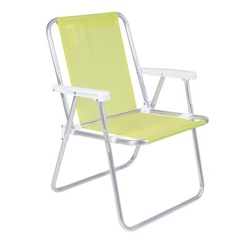 A Cadeira Alta Alumínio Polietileno Amarela Neon apresenta cor vibrante e é ideal para diferentes ocasiões e lugares. Da sala de estar às varandas e campings, é a escolha ideal para bons momentos. Além disso, por ser produzida em alumínio, é resistente à corrosão sendo o modelo certo para áreas litorâneas.Resistente, suporta até 110 kg.Com visual moderno, tem a tela em polietileno, fácil de limpar. Já os apoios para os braços são em plástico polipropileno. Para guardá-la, basta dobrar. Não ocupa muito espaço, podendo ser colocada em cantos e lugares estreitos.