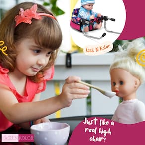 Todas as crianças adoram um conjunto de brincadeiras de fantasia, especialmente se forem "pais pequenos" de bonecas e a chance de explorar ideias imaginativas. A Fash N Kolor valoriza as atividades que seus filhos podem desfrutar com um carrinho de bebê para crianças, cadeira de alimentação para bonecas, carrinhos de bebê, conjuntos de banho para bonecas etc. Esses acessórios para bonecas estimulam a empatia e ajudam as crianças a expressar seus pensamentos. Acreditamos que essas atividades primárias melhoram a linguagem do seu filho, promovem a imaginação e tornam o brincar de conta agradável. As crianças adoram cuidar de bonecas como se fossem suas verdadeiras amigas, então com a cadeira de boneca Flower multicolorida Fash N Kolor, elas podem criar memórias felizes. A cadeira alta para bebês Fash N Kolor dá aos seus filhos uma experiência de aprendizado criativa e única. - Acessórios para bonecas: eleve a hora de brincar da boneca com nosso conjunto de mesa de cadeira alta para bonecas. Projetado para crianças que amam suas bonecas e brinquedos de pelúcia e é adequado para meninos e meninas, este conjunto com estampa floral exclusiva e alças de segurança melhora seu papel de cuidado. É uma adição ideal para acessórios de boneca - Companheiro na hora das refeições. Os melhores presentes para crianças! - Crie memórias duradouras durante a hora de alimentação com este companheiro de mesa de cadeira alta de boneca. Se seu filho é menino ou menina: este acessório de boneca é projetado para pais que estão procurando um presente de brinquedo para ser 100% divertido! As crianças podem facilmente fixar este assento portátil de cadeira alta para a maioria das mesas. É um item essencial para brincadeiras imaginativas e momentos estimulantes com suas bonecas. Perfeito para crianças de 3 a 12 anos. - Solução de jantar versátil e ajuste universal de boneca: nosso gancho de boneca de bebê no assento da cadeira é uma adição versátil aos conjuntos de brinquedos de boneca do seu filho. Ele se fixa facilmente à maioria das mesas, tornando-o perfeito para uso doméstico e em restaurantes. Seja um menino ou uma menina, esta solução de economia de espaço permite que eles se envolvam em brincadeiras interativas e se juntem à mesa de jantar da família. - Incentivando a responsabilidade: promova um senso de responsabilidade e comportamento carinhoso em seu filho com esta boneca falsa cadeira alta para bebês. À medida que as crianças brincam de cuidar de suas bonecas e aprendem a nutrir, elas desfrutarão do mundo imaginativo da brincadeira com bonecas. - O presente ideal para crianças: nosso gancho portátil no assento de boneca oferece conveniência e portabilidade, o que o torna uma adição fantástica aos conjuntos de bonecas para meninas de 3 a 12 anos. Seu design removível permite fácil armazenamento e transporte, tornando-o perfeito para encontros e aventuras em movimento.
