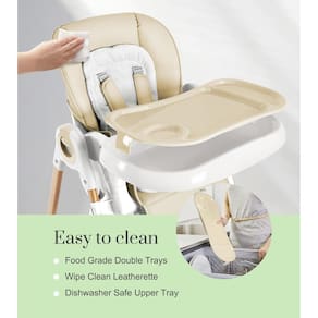 Cadeiras altas conversíveis para bebês e crianças, cadeira alta para bebês com altura ajustável, cadeira alta com bandeja removível, encosto e pedal ajustáveis, cadeira de jantar portátil para bebês - Fácil de limpar: esta cadeira alta possui bandejas duplas de grau alimentício que facilitam a limpeza. Basta remover a bandeja superior e colocá-la na máquina de lavar louça para uma limpeza sem esforço. Enquanto você limpa a bandeja superior, a bandeja inferior permanece acessível, facilitando a transformação da hora da refeição em hora de brincar. A almofada de superfície de couro sintético limpa garante que qualquer derramamento ou migalhas possa ser rapidamente removido. - ALTURAS AJUSTÁVEIS, ENCOSTO E PEDAL: nossas cadeiras altas para bebês e crianças têm ajuste de pé de três níveis, ajuste de assento de sete níveis e ajuste de encosto de quatro níveis, adaptando-se a diferentes alturas e necessidades dos bebês. O uso de botões pode ser ajustado e convertido rapidamente. - Mobilidade e portabilidade: nossa cadeira alta para bebês possui três pratos ajustáveis que podem ser removidos e guardados na parte de trás da cadeira de jantar. Fácil movimento e parada podem ser alcançados através de quatro rodas universais de posição fixa. Pode ser dobrado para armazenamento, melhorando ainda mais a conveniência da cadeira. - Segurança e conforto: nossa cadeira alta é projetada para conforto e segurança. Seu cinto de segurança de 5 pontos com almofada de ombro adiciona segurança extra para evitar que seu bebê caia. Os bebês encontrarão conforto incomparável na almofada de assento de camada dupla, que é acolchoada com esponja. Possui superfícies lisas que garantem que não haja bordas afiadas, mantendo seu pequeno protegido contra arranhões ou lesões durante a hora das refeições. - Montagem fácil: a cadeira alta é projetada com pais ocupados em mente, permitindo uma montagem rápida e fácil. Até as mães podem configurá-lo de forma independente em apenas 5 minutos! Com instruções simples e diretas e sem necessidade de ferramentas complicadas, você estará pronto para a hora das refeições rapidamente. - Cadeira alta maravilhosa: nossas cadeiras altas para bebês e crianças são atraentes e têm um estilo e design únicos. As pernas com grãos de madeira adicionam elegância à cadeira. O design neutro permite que meninos e meninas usem a cadeira e tenham uma boa aparência.