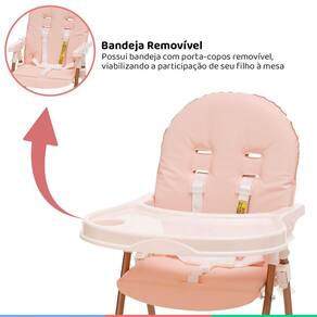 Peso suportado: Até 23kg; Material: Assento e encosto acolchoado de plástico laminado; Contém apoio para copo; Possui ajuste de altura; Cinto de segurança de 5 pontos; Trava de segurança; Apoio para os pés; Inmetro: 002366/2022.