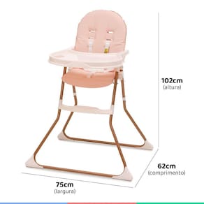 Cadeira de Refeição Alta Nick - Galzerano Quando os bebês começam a descobrir o mundo a sua volta é fantástico e emocionante para as mamães e os papais. E para isso, a Galzerano desenvolveu a Cadeira de Refeição Alta Nick, para que o bebê inicie sua alimentação solida com segurança e conforto. Sua estrutura feita em aço, possui assento e encosto acolchoada em plástico laminado, assim fica fácil realizar a higienização permitido que a criança descubra novas textura e sabores. A bandeja removível e lavável possui porta copo. Sua retirada é fácil e simples, e com a retirada permite que encoste a cadeira junto a mesa para que a criança faça parte da família durante as refeições. A Cadeira Alta Nick possui trava de segurança, cinto de 5 pontos com duas regulagens de altura, suporta uma criança de até 23 kg. Além de possuir um apoio para pés proporcionando segurança e conforto. E sua montagem e desmontagem é simples, basta retirar a bandeja e soltar a trava que a cadeira fecha, ficando em pé.