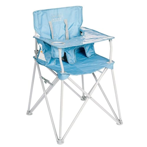 ciao! baby Cadeira alta portátil para bebês e crianças, cadeira alta compacta dobrável para viagem com bolsa de transporte para acampamento ao ar livre, piqueniques, dias de praia e mais (azul - Cadeira alta portátil – O design leve e flexível se desdobra facilmente, trava no lugar e dobra em segundos. Não é necessário montagem.