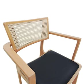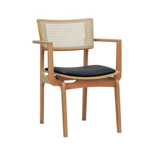 - Materiais: Estrutura em madeira de eucalipto, encosto com telinha sextavada aplicada e assento anatômico envernizado
