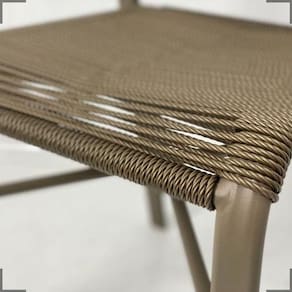O encosto e assento é feito em corda sintética trançadas artesanalmente.