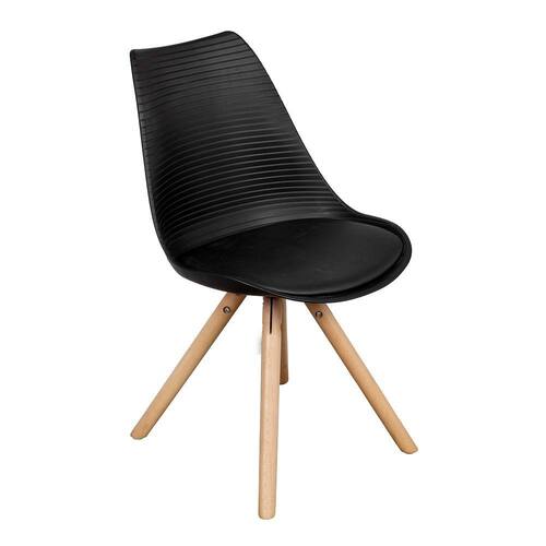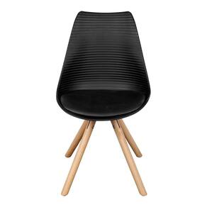 Características principais: • Moderna; • Cor: Preto; • Combina com diversos ambientes; • Design unico; • Encosto arredondado; • Assento em polipropileno; • Pés em madeira; • Altura do chão até o assento: 47cm, • Suporta até 120kg.