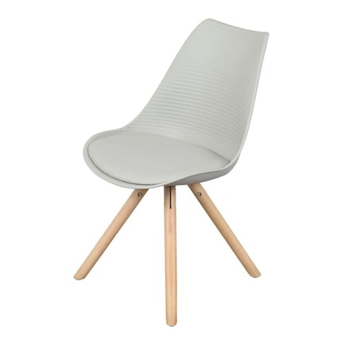 A cadeira Atlas é composta por assento em polipropileno com almofada fixa de espuma injetada revestida em PU com base em madeira.