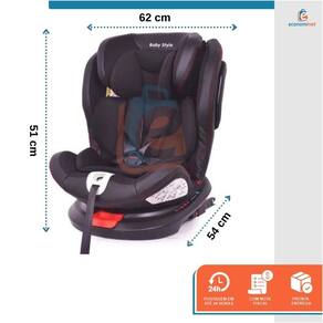 Características técnicas: Grupos de massa: 0 / I / II / III Faixa etária: 0 meses a aproximadamente 12 anos Peso suportado: Até 36 kg Peso aproximado do produto: 8,2 kg Sistema de fixação no veículo: Isofix + Top Tether ou cinto de 3 pontos do veículo Sistema de retenção da criança: Grupos 0 e I: Cinto interno de 5 pontos Grupos II e III: Não integral (cinto do veículo) Rotação: 360° Inclinação: 4 posições Apoio de cabeça ajustável: 11 posições Proteção lateral: Sistema SPS Capa removível e lavável Produto certificado pelo INMETRO Número de registro: 011224/2025 Medidas: 51 cm x 54 cm x 62 cm Marca: Baby Style Referência: 15218