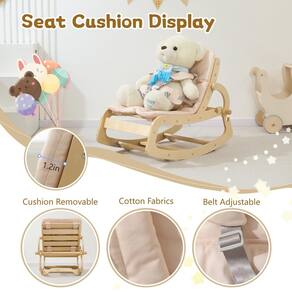 Cadeira de balanço de madeira ajustável 3 em 1, espreguiçadeira de bebê de design ergonômico com almofada removível, cinto de segurança e reforço, poltrona reclinável para bebês e crianças pequenas - ?Conversível 3 em 1? A cadeira de balanço versátil que oferecemos possui três configurações de reclinação distintas, permitindo a transição suave de um segurança para uma poltrona reclinável ou assento estacionário, atendendo a várias necessidades. Esta cadeira é projetada para ser um local confortável e seguro para o seu pequeno, desde a infância até os primeiros anos da infância. Ele balança suavemente seu bebê, oferecendo conforto e também promovendo o desenvolvimento do equilíbrio, tornando-a uma adição valiosa à jornada de crescimento do seu filho. - ?Excelente qualidade? Nossa cadeira de balanço infantil, feita de madeira de bétula natural resistente, oferece maior estabilidade e longevidade. Suas bordas lisas e arredondadas são projetadas para serem seguras para bebês, atendendo aos rigorosos padrões de segurança CPC para produtos infantis. É recomendado para uso com crianças pesando até 15 kg. - ?Ergonômico e confortável? Nosso assento de segurança é ergonomicamente projetado para fornecer suporte ideal para a coluna, pescoço e cabeça do seu bebê. Possui balanço ajustável e um design anti-ponta para segurança. A almofada de algodão natural incluída (45 x 72 cm) é removível e lavável na máquina, garantindo uma experiência confortável e limpa para o seu bebê. - ?Design de segurança?O design do cinto de segurança no suporte do bebê pode proteger a segurança da criança. A fivela de segurança ajustável é adequada para crianças de diferentes idades. - ?Bom presente? Este roqueiro versátil, com seu visual clássico, se adapta a qualquer casa e é um presente perfeito para várias celebrações. Seus suportes dobráveis fornecem suporte forte e facilmente travam no lugar. O design de baixa manutenção é uma vantagem para pais ocupados. - ?Sugestão? Recomenda-se usar este produto em tapetes, tapetes. Como o corpo principal deste produto consiste em madeira, pode ocorrer um pouco de deslizamento ao usá-lo em pisos lisos.