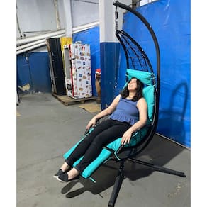 Seu design ergonômico se adapta ao corpo, e os cinco níveis ajustáveis de inclinação permitem encontrar o ângulo ideal para relaxar, ler, cochilar ou simplesmente balançar suavemente.