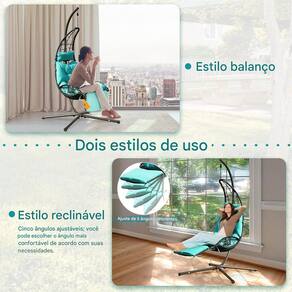 Seu design ergonômico se adapta ao corpo, e os cinco níveis ajustáveis de inclinação permitem encontrar o ângulo ideal para relaxar, ler, cochilar ou simplesmente balançar suavemente.