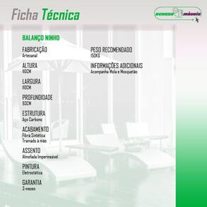 Especificações Técnicas: Marca: Acesse Móveis; Modelo: Balanço Suspenso Ninho; Material da Estrutura: Aço Carbono; Acabamento: Fibra Sintética; Material do Assento: Tecido Impermeável; Enchimento do Assento: Espuma flocada; Acompanha Almofada? Somente a almofada do assento; Possui Corrente? Acompanha mola e mosquetão; Possui Suporte? Não Garantia: 3 Meses; Suporta Até -kg-: 150kg; Necessita de Montagem?-Sim/Não-: Necessita a instalação no local que deseja colocar o produto; Medidas -LarguraxProfundidadexaltura-: 110x93x110 Marca: Acesse Móveis Ean: 7898704743186