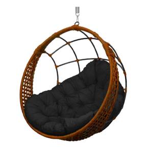 Cadeira Balanço Ninho Suspenso Em Corda Náutica Luxo Ocre/preto