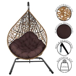 Cadeira Balanço Ninho Suspenso Gota Tramado Com Suporte E Almofada Impermeável Acesse Móveis Caramelo/marrom Apresentamos a voce o Balanco Suspenso Ninho Gota: sinonimo de conforto, elegancia e durabilidade! Com sua estrutura robusta em ferro e acabamentos impecaveis em fibra sintetica de alta qualidade, o Balanco Suspenso Ninho nao apenas impressiona visualmente, mas tambem oferece resistencia excepcional.