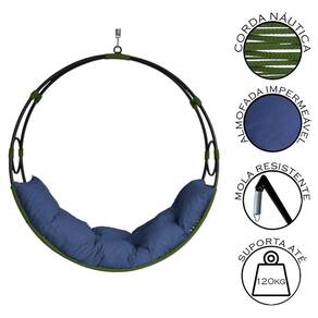 Cadeira Balanço Suspenso Lua Nova Em Corda Náutica Verde/azul A Cadeira Balanco Suspenso Lua e a escolha perfeita para transformar qualquer espaco em um ambiente aconchegante e elegante. Com sua construcao robusta e materiais de alta qualidade, esta cadeira oferece resistencia e durabilidade. Fabricada em aco carbono com pintura eletrostatica, sua estrutura garante protecao contra corrosao e um visual moderno. O acabamento em corda nautica de alta qualidade, com resistencia UV, nao so proporciona uma protecao eficaz contra os raios solares, mas tambem adiciona um toque sofisticado a cadeira, mantendo sua aparencia impecavel por muito mais tempo. O assento e equipado com uma almofada confeccionada em espuma D28, conhecida por seu excelente suporte e conforto. Revestida com tecido impermeavel, a almofada facilita a manutencao e e resistente a umidade, tornando-a ideal para uso em ambientes internos e externos. A fabricacao artesanal totalmente da cadeira garante um toque unico e diferenciado, fazendo de cada peca uma obra de arte exclusiva. Para completar, a Cadeira Balanco Suspenso Lua vem com uma mola e um mosquetao de alta qualidade para o encaixe, proporcionando uma instalacao facil e uma experiencia de balanco suave e segura. Seja para relaxar na varanda, no jardim ou ate mesmo dentro de casa, esta cadeira combina conforto e funcionalidade, criando um refugio acolhedor em qualquer lugar. ESPECIFICACOES TECNICAS: - Marca: Acesse Moveis; - Modelo:Cadeira l Balanco Suspenso Lua em Corda Nautica; - Material da Estrutura: Aco Carbono; - Acabamento: Corda Nautica com anti-UV; - Material do Assento: Impermeavel - Enchimento do Assento: Espuma D28; - Acompanha Almofada? Somente a almofada do assento; - Possui Corrente? Acompanha mola e mosquetao; - Garantia: 3 Meses; - Suporta Ate (kg): 150kg; - Necessita de Montagem?(Sim/Nao): Sim, necessita somente de um encaixe; - Medidas (LarguraxProfundidadexAltura): 140x50x140cm; Marca: ACESSE MÓVEIS