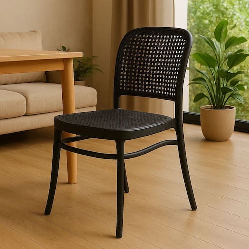 Modelo: Barcelona Cor: Preto Estrutura: Polipropileno resistente de alta qualidade Encosto: Padrão sextavado com proteção UV Peso suportado: até 120 Kg com estabilidade Assento: integrado à estrutura