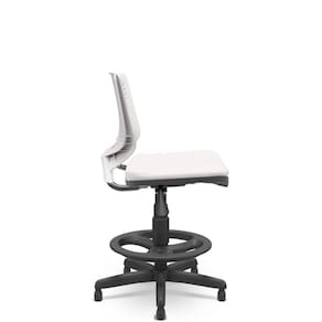 O design moderno da Beezi Caixa reflete-se no encosto e assento, desenhados para oferecerem ergonomia. Compostos em material termoplástico de engenharia, presente também nos apoios de braço, esse modelo da linha possui elevação e apoios para pés, indicados para bancadas mais altas e outras aplicações práticas que exigem acomodação em uma posição elevada.