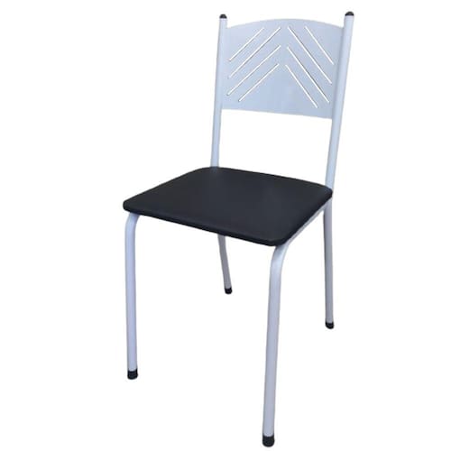 Cadeira Branca de Cozinha Jantar Metal Tubular Almofadada Assento Preto
