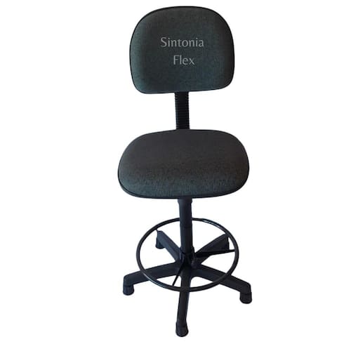 Cadeira caixa alta com aro com base sapata fixa pra recpçao balcao mercado tecido cinza Cadeira caixa - aro para apoio dos pés - prolongador de altura - madeira reflorestada - espuma injetada revestida de tecido j. Serrano anti-chamas e bordas em pvc flexivel - pés fixo com sapatas. Altura do chão aom assento: Mínima 63 cm Máximo 75 cm Marca: Não Informado