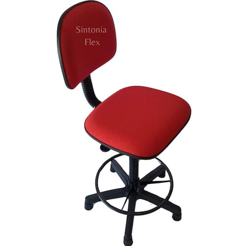 Cadeira caixa alta com aro com base sapata fixapra mercado balcao recpçao tecido vermelho Cadeira caixa - aro para apoio dos pés - prolongador de altura - madeira reflorestada - espuma injetada revestida de tecido j. Serrano anti-chamas e bordas em pvc flexivel - pés fixo com sapatas. Altura do chão aom assento: Mínima 63 cm Máximo 75 cm Marca: Sintonia Flex