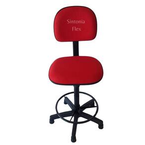 Cadeira caixa alta com aro com base sapata fixapra mercado balcao recpçao tecido vermelho Cadeira caixa - aro para apoio dos pés - prolongador de altura - madeira reflorestada - espuma injetada revestida de tecido j. Serrano anti-chamas e bordas em pvc flexivel - pés fixo com sapatas. Altura do chão aom assento: Mínima 63 cm Máximo 75 cm Marca: Sintonia Flex