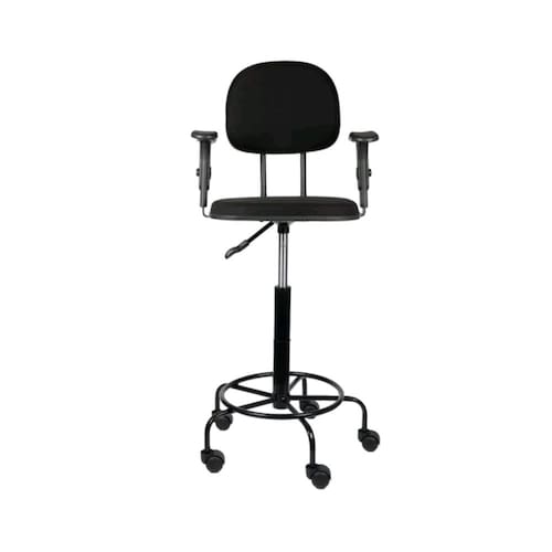 Cadeira secretaria caixa alta - braço com regulagem - apoio para os pés - estrela de ferro com rodizios - espuma injetada - madeira reflorestada - bordas em pvc flexivel - revestido em tecido j. serrano anti-chama - prolongador de altura