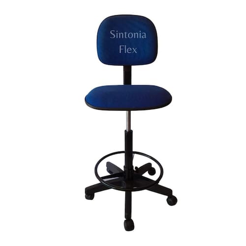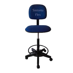 Cadeira caixa alta com aro e com rodízio tecido azul Cadeira caixa - com regulagem de altura a gás - estrela de ferro com rodízios - prolongador de tamanho - madeira