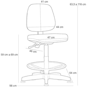 Altura do chão ao assento: 59 cm á 69 cm.