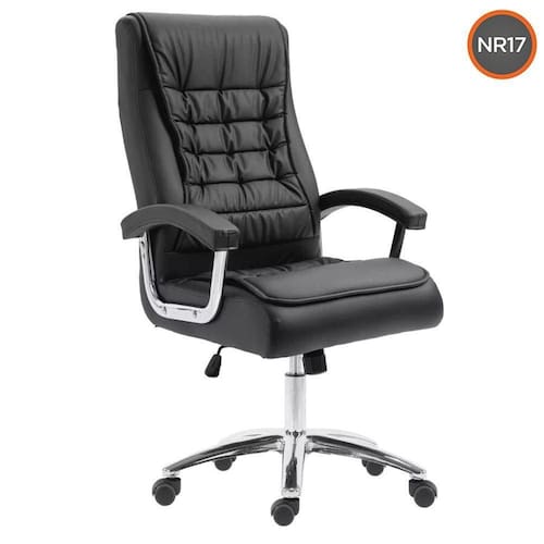 A Cadeira California possui certificação da norma NR17. Além do design e elegância o assento possui uma tecnologia de mola ensacada, garantindo máximo conforto. Revestimento em Material sintético. Base e braços em aço cromado. Mecanismos sincronizado, que permite travar inclinação do encosto em qualquer posição.