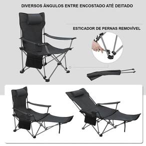 Cadeira Camping Dobrável Pesca Praia Espreguiçãdeira Preta
