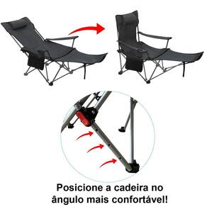 Leve e Portátil, Esta cadeira de acampamento é leve e pode ser dobrada para facilitar a portabilidade, é durável de usar. Vem com uma bolsa de transporte para facilitar a viagem e facilitar o armazenamento. - Nossa cadeira de acampamento dobrável é perfeita para todas as atividades ao ar livre, como camping, festivais de música, festas de concerto, churrascos, caminhadas, pesca, mochila, eventos esportivos e piqueniques. - REFORÇADA, o design da estrutura científica com encosto completo torna esta cadeira confortável para sentar e relaxar, a estrutura da cadeira dobrável é mais estável e suporta até 120 kg. Características: - Pode ser Utilizado como cadeira e espreguiçadeira. - Com bolsa para transporte - Medidas 90cmx45x50 Altura x largura x largura, medidas completas nas fotos .
