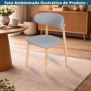 Cadeira Caribe Alice Estrutura Madeira Clara Assento e Encosto Revestido em Poliuretano PU Cinza - Fendi