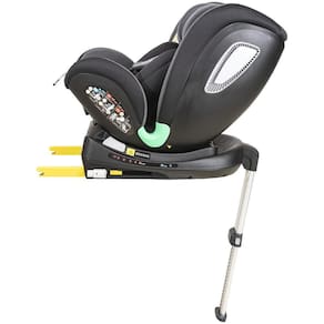 A cadeira possui rotação 360º que permite girar o dispositivo, facilitando o colocar e retirar a criança do carro com mais conforto e praticidade.