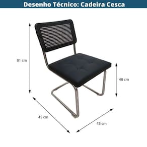 Cadeira Cesca Encosto Madeira E Palha Natural Preta Assento Poliuretano (pu) Preto Base Aço Cromado Inspirada no design de Marcel Breuer de 1928, na escola Bauhaus a cadeira Cesca continua a ser um sucesso atemporal. Com uma estrutura de aço cromado, o encosto é emoldurado em madeira maciça e apresenta detalhes em rattan trançado em palha natural. O assento é confeccionado em poliuretano, proporcionando conforto e durabilidade. Sempre sem abrir mão do conforto e sofisticação, a Or Design é importadora de móveis perfeita para quem procura qualidade, design e charme. Desde móveis para decoração em geral até móveis para escritório a Or Design oferece o que há de melhor no mercado. Encontre aqui o móvel perfeito para o seu ambiente. Cor: Preto | Materiais: Madeira, Palha, Poliuretado | Estilo de Decoração: Moderno | Linha: Cesca | Marca: Ór Design | Peso Suportado: 120.00 | Tipo de Base: Fixa | Atributos: Confortável, Versátil, Elegante | Área de Uso: Interna | (tempo): 6 meses | (descritivo): contra defeitos de fabricação de 06 meses. Consulte as nossas políticas. | Peso: 7.00 | Medidas: Largura (cm): 45.00 | Medidas: Profundidade (cm): 45.00 | Medidas: Altura (cm): 81.00 | Medidas: Altura até o Assento (cm): 48.00 | Entregue Montado?: Sim | Possui Manual de Montagem?: Acompanha o Produto | Origem do Produto: Importado | Conservação e Manutenção: Limpeza com pano úmido em solução de água e detergente neutro. Secar em seguida. | Acabamento: Fosco | Tipo de Assento: Fixo | Tipo de Encosto: Fixo | Estado de Origem: SP | Conteúdo da Embalagem: 01 Cadeira | Produto: Cadeira Cesca Or Design Encosto Madeira Palha Preta Assento Poliuretano Preto Base Aço Cromado | Tonalidade: Bege | Ambiente indicado: Salas | Material da estrutura: Madeira | Montagem: Montado | Capacidade de Peso: 120