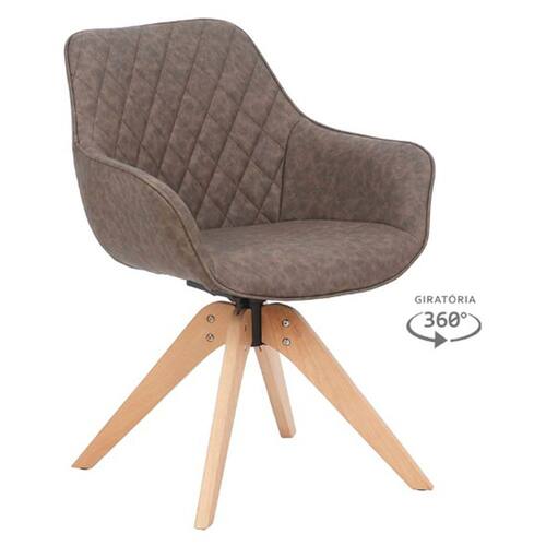 Procurando uma cadeira que lhe traga sofisticação, beleza, modernidade e conforto? A Cadeira Cíntia Base Giratória trás o combro disso e muito mais! Tendo sua base em madeira e estrutura revestida em PU vintage, ela se encaixará perfeitamente em qualquer ambiente em que for posta.