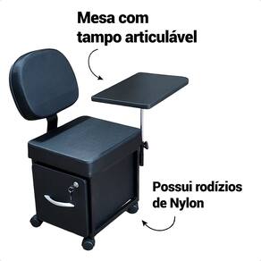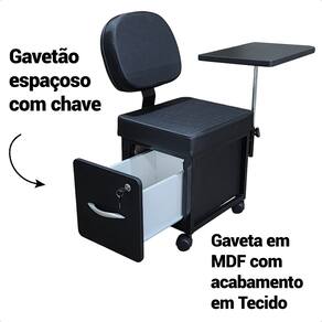 Cadeira Cirandinha Manicure com Gavetão Tampo e Rodízios