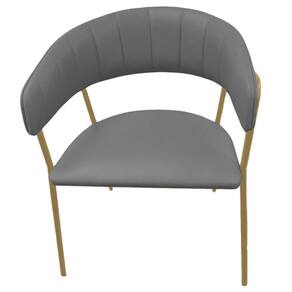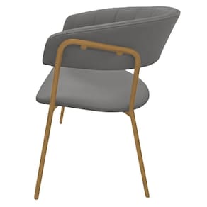 Cadeira com Braços Maraú PSG Móveis Couro autêntico Cinza Escuro com Base em Aço Dourado