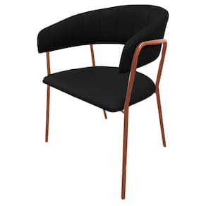 Cadeira com Braços Maraú PSG Móveis Couro autêntico Preto com Base em Aço Cobre