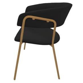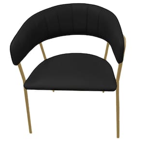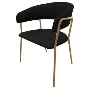 Cadeira com Braços Maraú PSG Móveis Couro autêntico Preto com Base em Aço Dourado