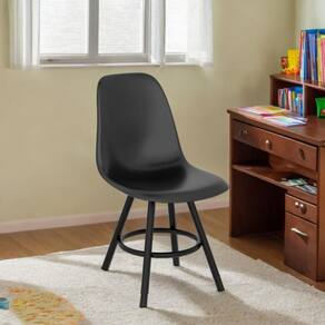 Cadeira Concha Infantil 61,0cm X 32,0cm X 33,5cm Preto. A cadeira concha infantil é uma peça elegante e confortável, com um design curvo que oferece suporte ergonômico. Suas pernas, feitas de metal, garantem estabilidade. Ideal para criar um ambiente acolhedor, essa cadeira se adapta a estilos de mesas variados, sendo perfeita para crianças brincarem e se divertirem. Marca: Devan Móveis