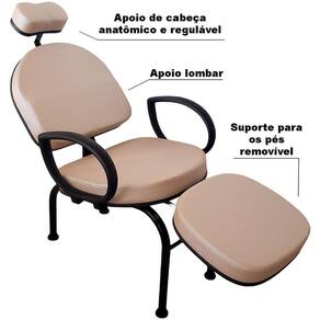 Cadeira Conforty + Mocho Maquiagem Cílios Sobrancelha UnhasPara execução de vários procedimentos de estética e beleza, a For-ty Store lançou a Cadeira Multiuso para Procedimentos modelo Conforty.Com ela, você pode fazer serviços como maquiagem, cílios, sobrancelha, limpeza de pele, unhas, e demais procedimentos, mantendo conforto para cliente e profissional.É uma cadeira robusta, que tem inclinação e apoios corretos para variados serviços.Características:- Cor do estofado: PÉROLA em Tecido Sintético Facto, o tecido Facto é resistente ao uso de Álcool 70 para limpeza e higienização- Encosto de cabeça anatômico, com altura ajustável, que apoia a nuca, dando conforto para o cliente e a firmeza que o profissional precisa- Apoio lombar, para que seu cliente se sinta confortável pelo tempo que necessite para execução do procedimento - Apoio de pernas: além de deixar seu cliente relaxado, tem a altura certa para procedimentos nos pés e unhas dos pés. Pode ser removível- Apoio de braços em P.U., material resistente e com toque macio- Cadeira de apoio para profissional, tipo mocho, para procedimentos onde o profissional pode executar sentado. Possui regulagem de altura e espuma injetadaMedidas da cadeira:Medidas montada: 130cm x 63cm x 85cmSem o apoio de pé: 90cm x 63cm x 85cmMedidas internas no assento: largura 49cm x Profundidade 48 cmMedidas internas do encosto: Largura 47,5cm x Altura 42cmMedida do assento ao chão: Parte próxima ao encosto 42cm x Parte próxima ao apoio de pés 52cmAlturas do apoio de pés: Mínima 39,5 cm e Máxima 49 cmMedidas aproximadas, podendo haver pequenas variaçõesSuporta até 160Kg distribuídos Peso 19kgMedidas do mocho: Altura mínima 53cm e máxima 64cmAssento 38cm diâmetroPentapé 53cm diâmetroSuporta até 120Kg distribuídos Todas as medidas são aproximadas podendo haver pequenas variações.Medida da caixa:68cm x 53cm x 54cmPeso do Kit 23kg