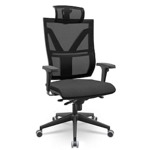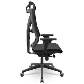 Produto nacional fabricado pela Plaxmetal Peso Max. Recomendado: 120 kg Classificação: Giratória; Alta com apoio Assento: Com espuma revestido em sintético preto. Modelo: nacional Regulagem de Altura: Sim, com pistão classe 4. Com rodízios: Sim - PA60mm Com sapatas: Não se Aplica Mecanismo: Slider Regulagem de altura do Encosto: Sim Braços: Braços Reguláveis em Poliuretano. mácio não é 3D Medidas da Cadeira A x L x C : Medidas expressas na última foto do anuncio. Tipo de Revestimento: Encosto em tela; Assento Revestido Poliéster Preto Garantia: garantia de 1 ano